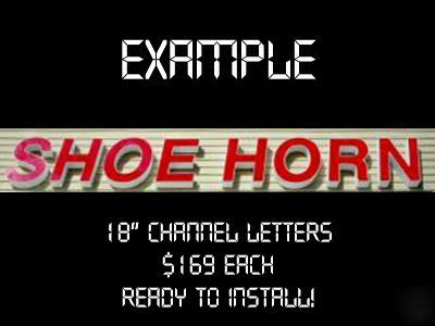 We have 18" Block style LED Channel letters (any letter/numeral) in stock ready to install. These letter are hand made with top quality materials. They are made in a standard Arial font. We offer a choice of Red or White face with White or Black returns (side of letters). Letters with Red face have Red LEDs and letters with White face have White LEDs. When ordering you must specify Face and Return colors.