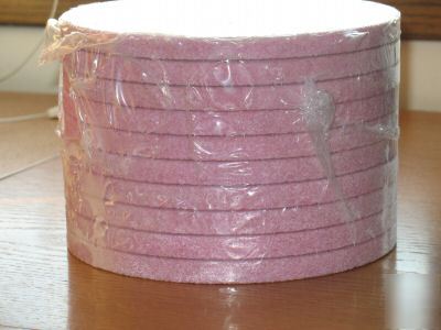 10 pc.. lot- New Bay State brand surface grinding wheels. Size: 8 x 1/2 x 1-1/4. Specification: 17A46-J8V56. These wheels are made with premium pink aluminum oxide grain. Pink aluminum oxide cuts cooler and cuts a wider range of steels than regular aluminum oxide. Pink cuts exceptionally well grinding hard alloys and tool steels as well as softer steels and irons. Catalog price is over $18.00 each. Wheels are a 46 grit in a "J" hardness. Packed in the original factory box.