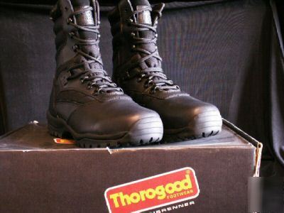 834-6092 Men's Force Recon 8" 10 1/2 Wide.Thorogood Boots; Rubber Vibram all terrain mini-lug outsole with polyurethane midsole. Polyurethane removable insert. Black full grain leather/1000 denier cordura.Made in the U.S.A. NIB Please see more pictures below. New in the box