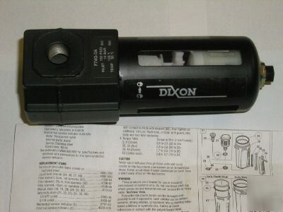 This is a Dixon air filter brand new never used. Looks to be 1/2" threaded inlet and outlet ports. Max psi 150 and max temp is 125 F. Has a cast aluminium body with a polycarbonate bowl with metal guard. Comes with specs and instructions. Dimensions are 7 1/2" long by 3" wide.