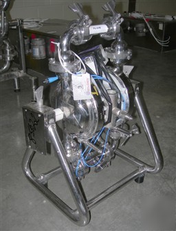USED: Wilden air powered diaphragm pump, stainless steel. 1" tri clamp inlet/outlet. Serial# S-00286.
