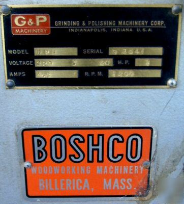 This is a used, G&P Machinery, Model DPN, Double End Buffer Sander. Includes (1) 6" diameter x 8" air filled sander on one of the 3/4" diameter shafts, (1) polishing wheel on the other side and driven by a Baldor motor.