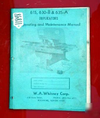 W.A. Whitney Corp.Oper & Maint Manual Duplicators: