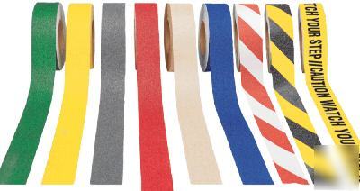 The price is for a 4" x 60' roll of green grit tape (SG3204G), many other sizes and colors available, please see our listings. True Grip series of anti-slip grit tapes are an excellent choice for most general purpose applications. The tape is constructed with a 46-grit mineral abrasive surface with an aggressive acrylic adhesive backing with removable paper liner. Tape offers good wear and abrasion resistance and is suitable for use both indoors, outdoors and in wet conditions. Surface must be clean, dry and free on contamination prior to application. Data sheets can be found at