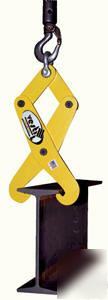 Designed for lifting I-beams with overhead lifting device. The heavier the load the stronger the grip. Includes lifting ring for easy use with overhead hoist. Loads need to be centered and guided during lifting operation. Manufactured to ASME B30.20 standards.