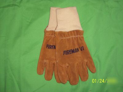 THESE ARE NEW FIREMAN VI GLOVES SIZE XX-LARGE. THEY DON'T MEET TODAYS NFPA STANDARDS FOR STRUCTURAL FIREFIGHTING! BUT THEY WORK GREAT FOR WILDLAND FIREFIGHTING, RESCUE, OVERHAUL, OR JUST WORKING AROUND THE STATION ONCE YOU GET BACK FROM A CALL.